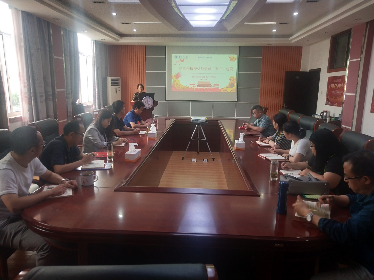 2021年6月18日下午,在品学楼3316会议室,教师建筑党支部书记罗雅丽为支部全体党员,讲了《以周恩来精神引领党员“五心”建设》专题党课。