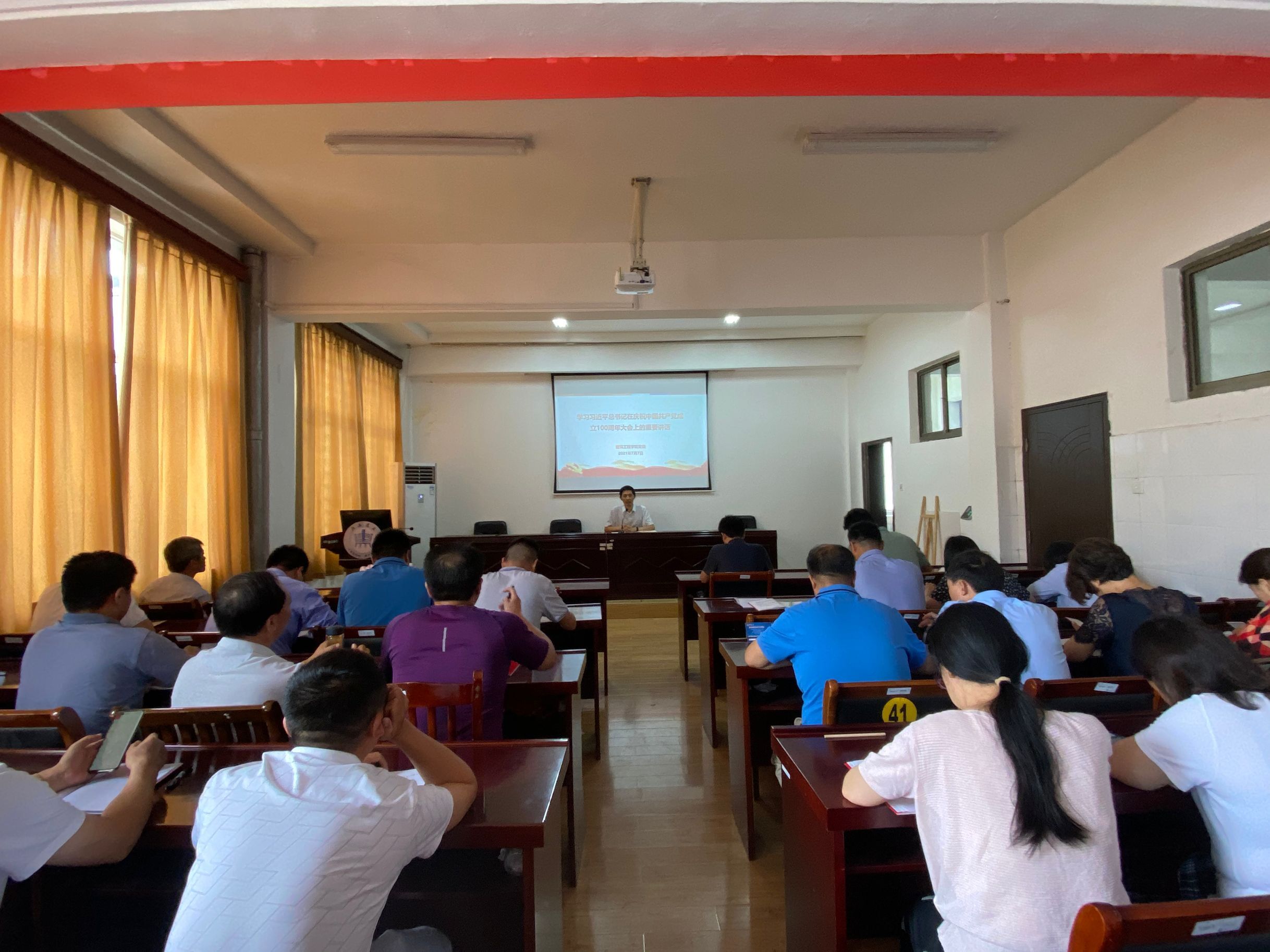为贯彻落实习近平总书记在庆祝中国共产党成立100周年大会上的重要讲话精神,7月7日下午,建工学院组织全体教师深入学习领会习近平总书记的重要讲话。学院党委书记陈亚东主持会议。