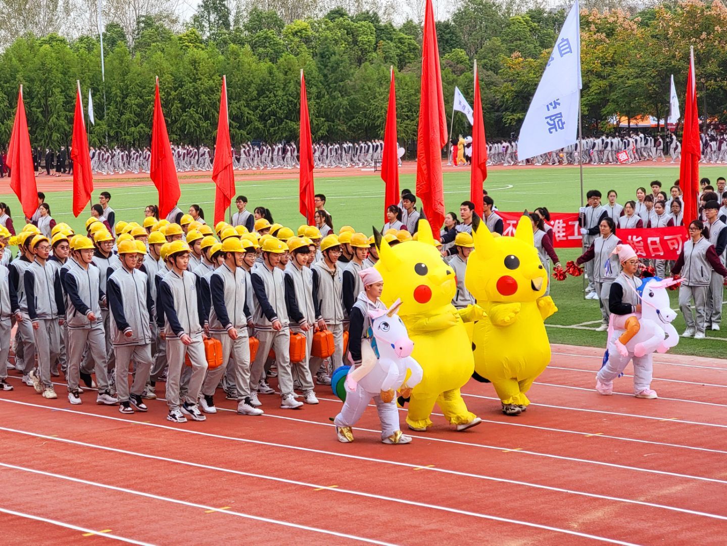 开幕式上,伴随着激昂的进行曲,英姿飒爽的国旗护卫队首先入场,他们精神抖擞,昂首挺胸,踏着坚定的步伐,走向升旗台,严阵以待。接着,各二级学院列着方阵,迈着整齐的步伐,喊着响亮的口号依次进入会场。身着皮卡丘衣服的建工学子走在队伍前列,后面跟着的建工方阵手提工具箱,头戴安全帽,他们青春活泼,满怀自信,迈着整齐的步伐走过,接受着主席台的检阅。接下来,青春洋溢的建党百年红歌操舞更是将气氛推至高潮。伴随着开幕式的掌声,校运会正式开始。