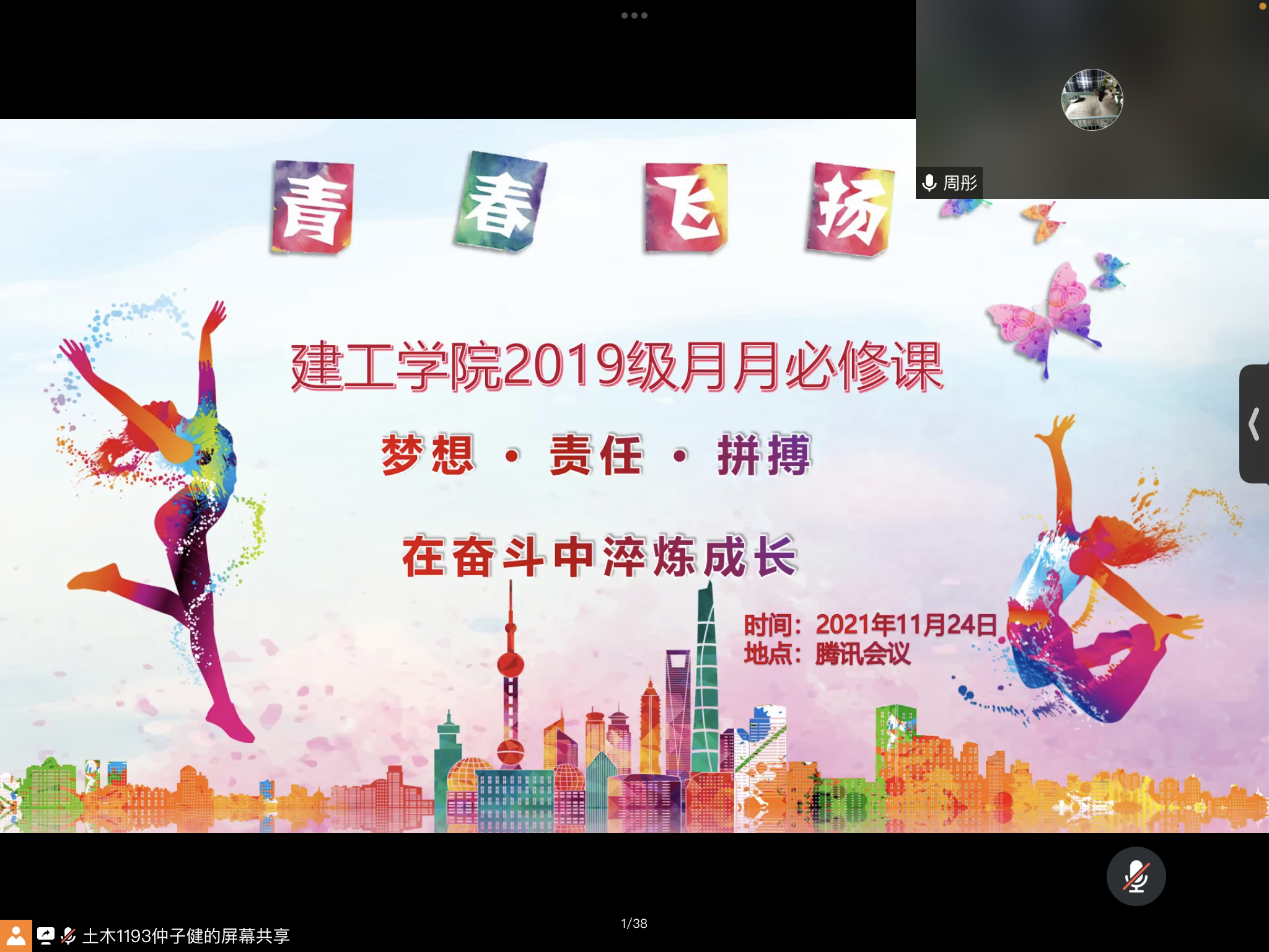 为进一步浓厚学风,建工学院于2021年11月24日17点在腾讯会议平台召开了2019级月月必修课:梦想、责任、拼搏——在奋斗中淬炼成长。2019级辅导员周彤、2019级全体同学参加了本次会议。