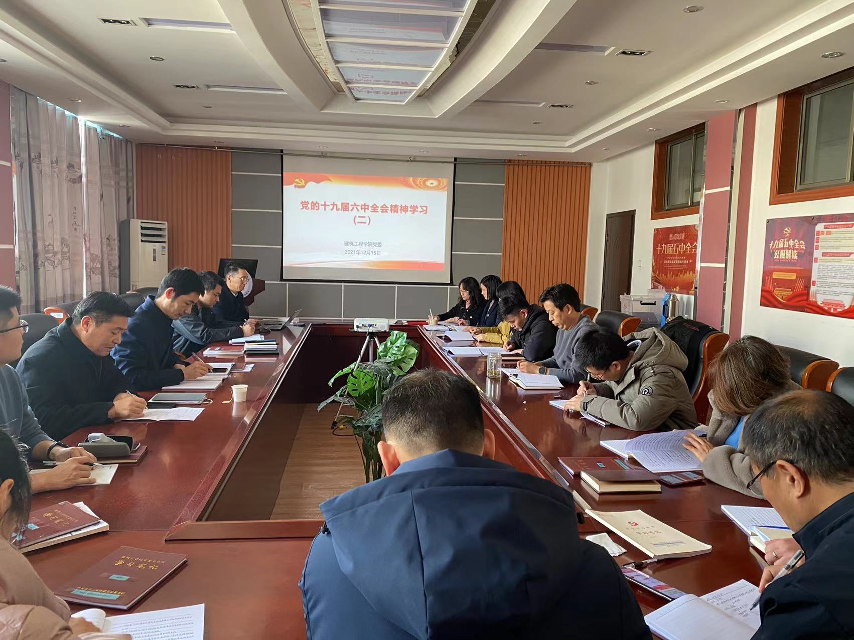为学习贯彻落实十九届六中全会精神,2021年12月15日上午,建工学院党委在品学楼3316会议室开展理论中心组集中学习,建工学院院长董云领学,校党史学习教育第二督导组成员刘恩乡、学院党委理论中心组全体成员参加本次集中学习活动。党委书记陈亚东主持学习活动。