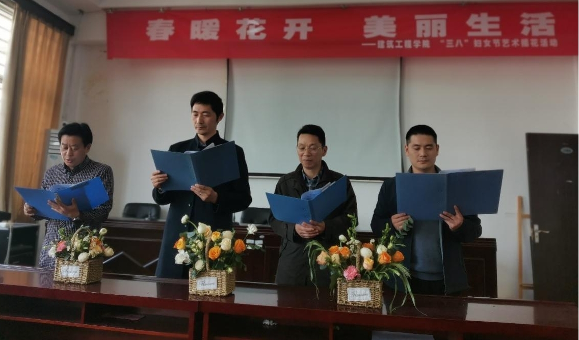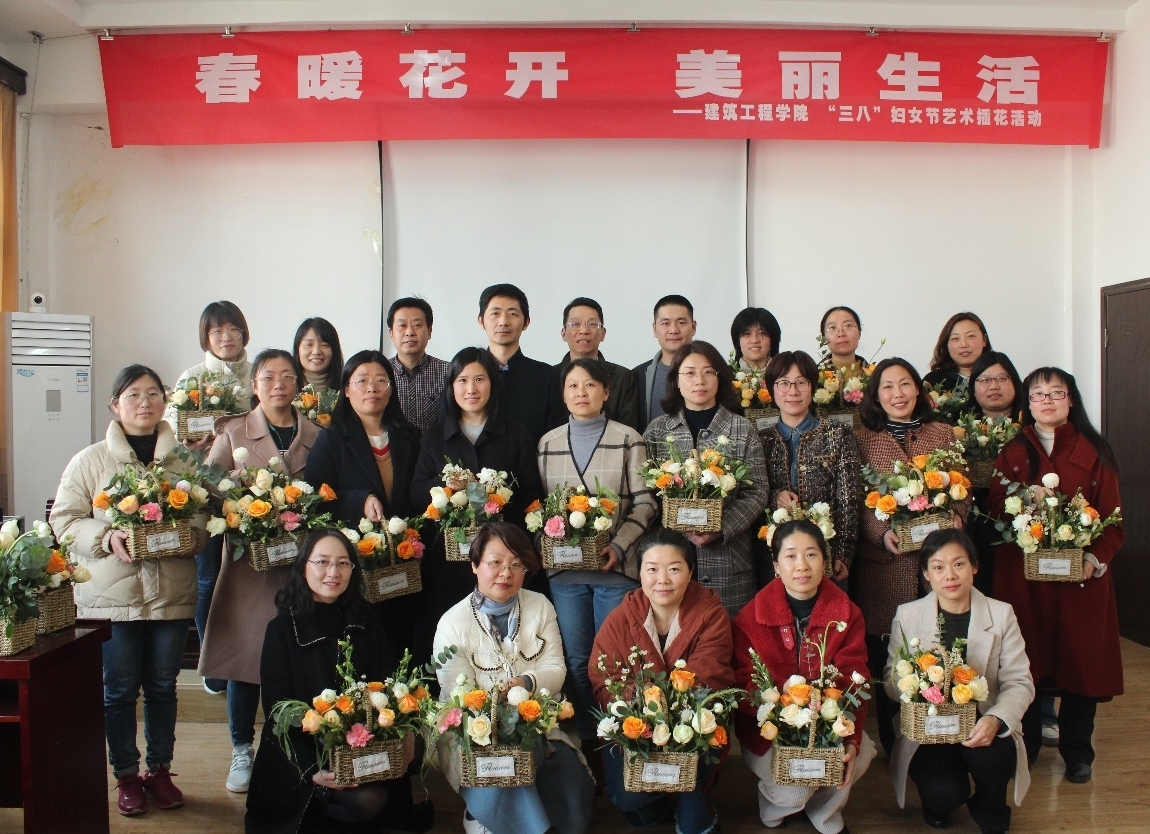 迟日江山丽,春风花草香。在这春意盎然、生机勃发的阳春三月,为庆祝第112个“国际三八妇女节”,进一步丰富学院女教工的精神文化生活,2022年3月9日下午14:30,建筑工程学院在学院报告厅3304举办了“春暖花开,美丽生活”艺术插花活动,学院全体女教工参加了活动。