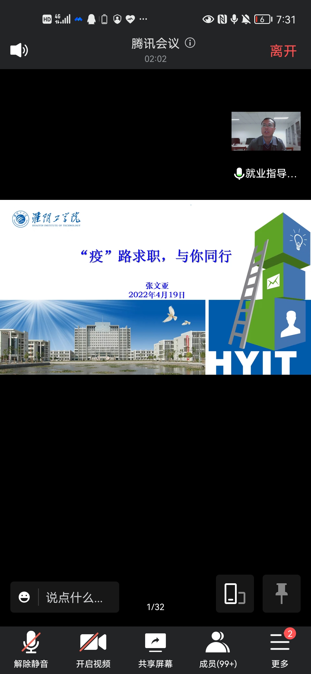 为进一步提高我院毕业生就业意识,了解当前就业形势,转变就业观念,增强就业资本,提升就业能力,2022年4月19日晚上7:30,建工学院邀请校招就处副处长张文亚线上开展就业专题讲座《“疫”路求职,与你同行》,为建工学子宣讲就业政策及应聘时需注意的事项,会议由建工学院冯云平老师主持,学院2022届全体学生参加了此次讲座。