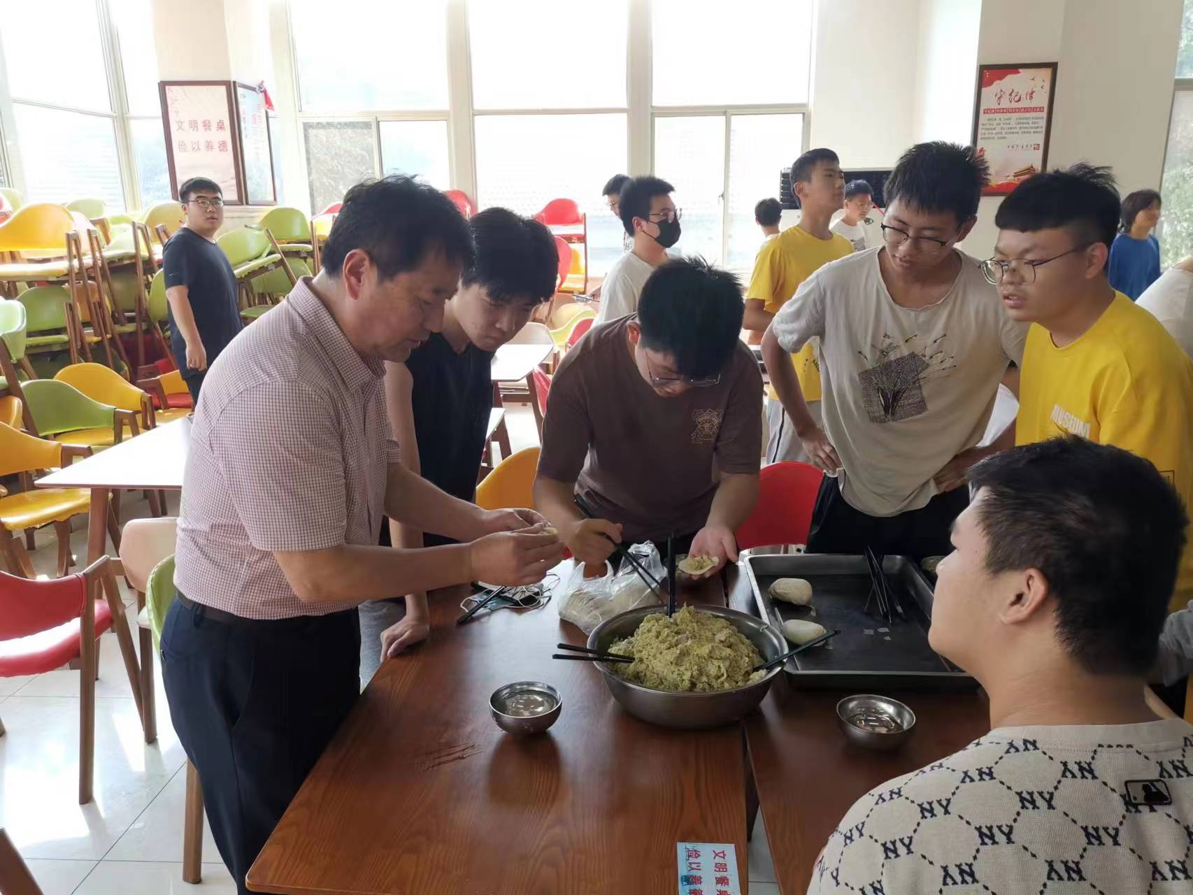 现场,朱晓文熟练地向同学们展示了包饺子的技巧。在他的指导下,大家通力合作、分工协作,有的弄饺子馅,有的包饺子,有的安排煮饺子,纷纷使出看家本领,现场欢声笑语,热闹非凡。“你家是哪儿的?”“现在的课程压力重不重呀?”“大家学习生活上有没有什么困难?”在包饺子和吃饺子的过程中,从家乡的美食到饺子的几种包法,从平时的宿舍生活到将来的就业方向,朱晓文和同学们聊起了家常和平时的学习生活,深入地了解同学们学习、生活、心理等方面情况,引导他们用实际行动爱校荣校。