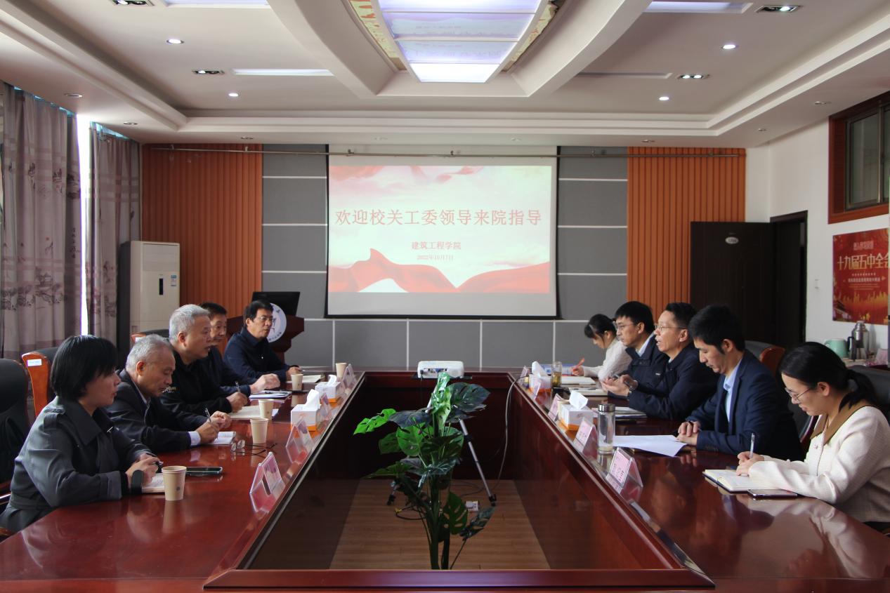 10月7日上午,校关工委执行主任章跃、秘书长戚耀贵、副秘书长王晓惠,驻委老同志张乃钟、徐亚洲一行来到建工学院调研。学院党委书记陈亚东,院长董云,党委副书记、副院长王启松等参加会议,会议在品学楼3316会议室召开。