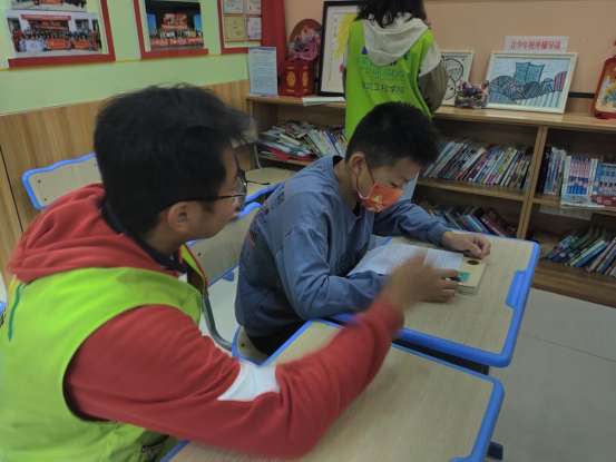 2022年11月12日下午,青年志愿者们穿上浅绿色的小马甲,前往520志愿者联盟辅导站,带着爱心和热情加入到小老师的行列中,尽自己所能肩负起自己的责任。