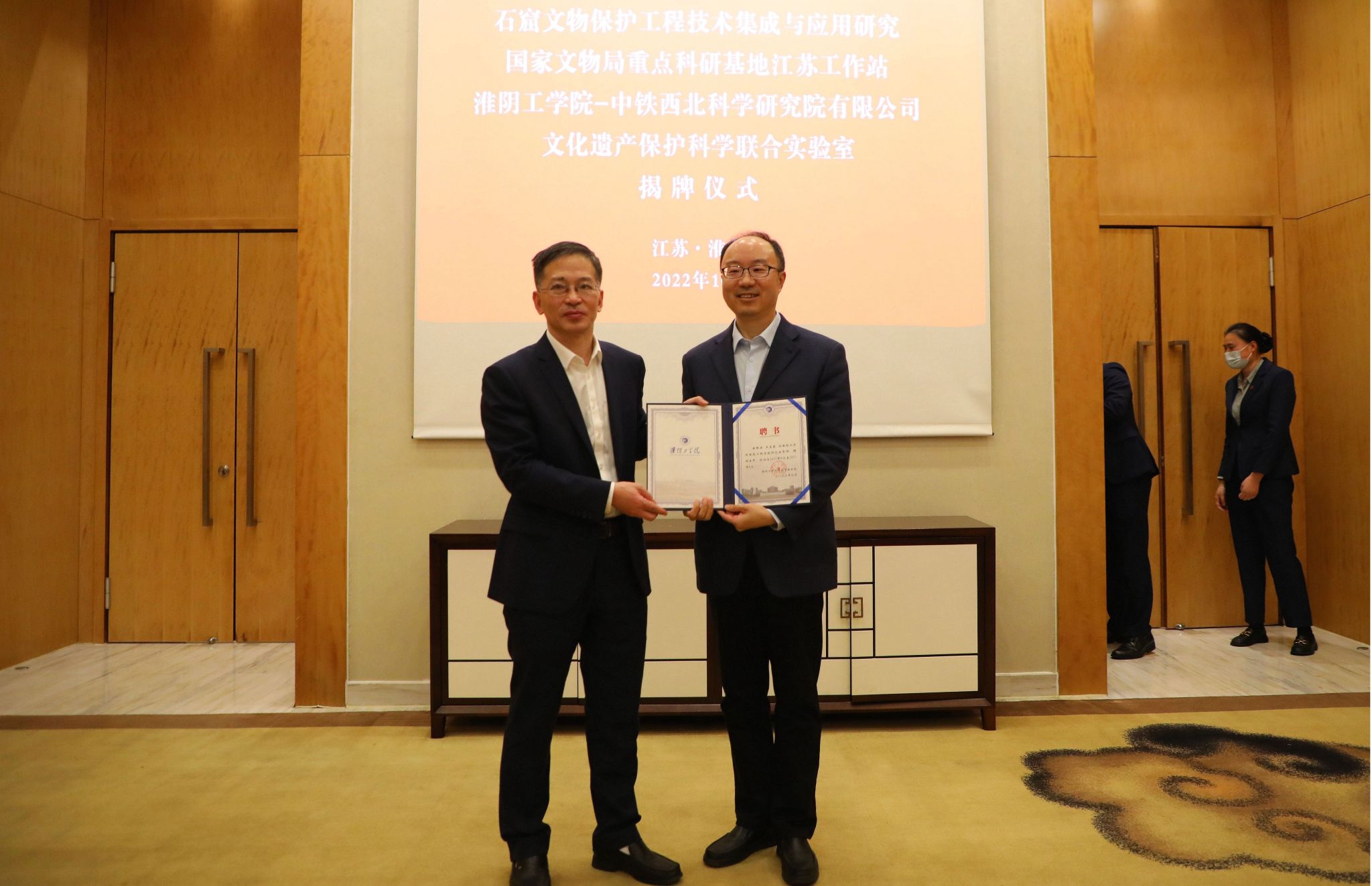 学院与中铁西北科学研究院有限公司共建“石窟文物保护工程技术集成与应用研究国家文物局重点科研基地江苏工作站”,为我院首个与企业共建的省部级重点科研平台。同时,双方签订了研究生联合培养协议,签署“文化遗产保护科学实验室”校企共建协议,是中铁西北科学研究院有限公司首个区域级合作伙伴,校企融合迈出重要一步。