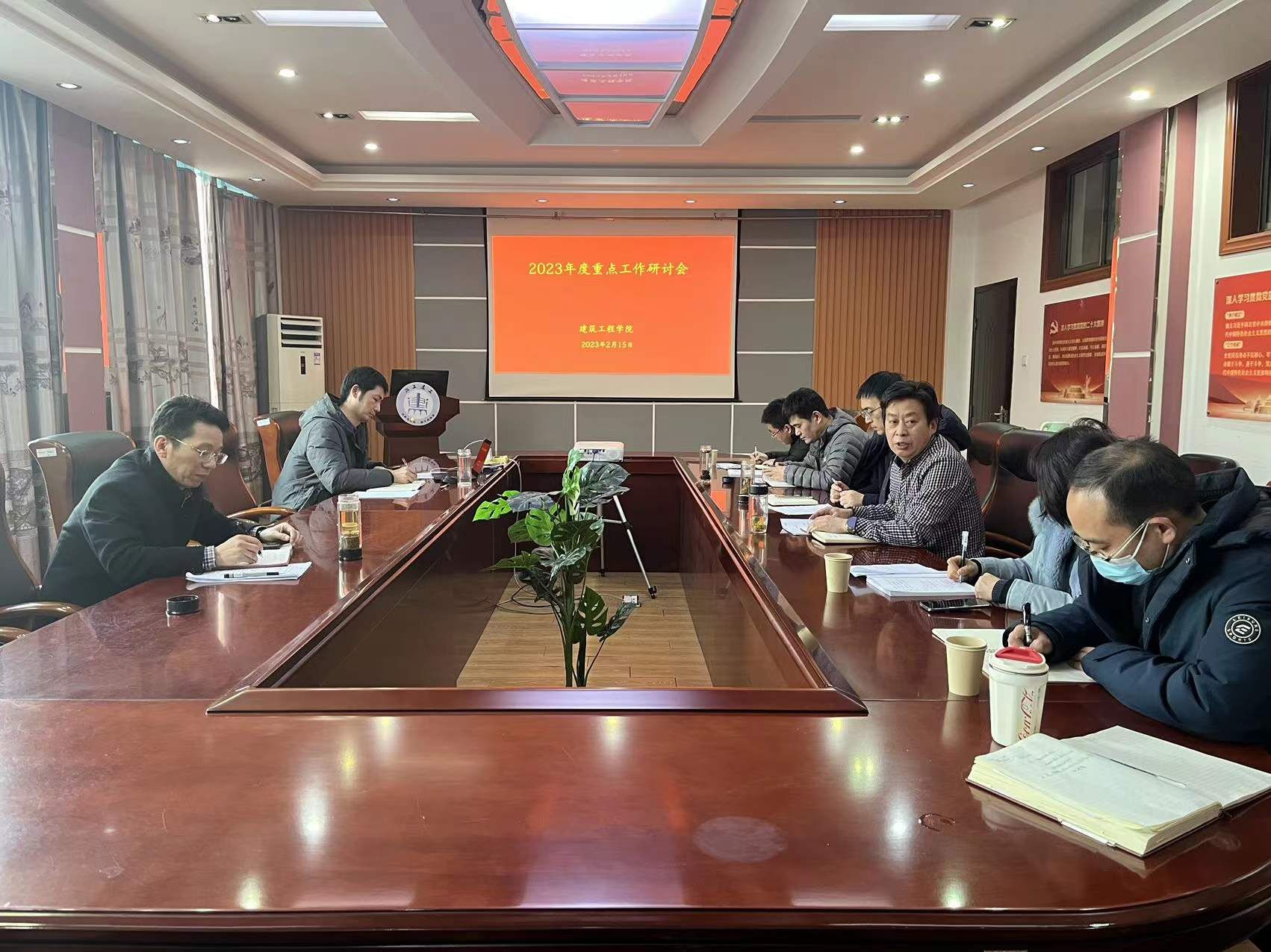 2月15日下午,建工学院在北京路校区品学楼3316室召开2023年度重点工作研讨会,会议由党委书记陈亚东主持,学院领导班子成员参加会议,院长助理孙华圣列席会议。