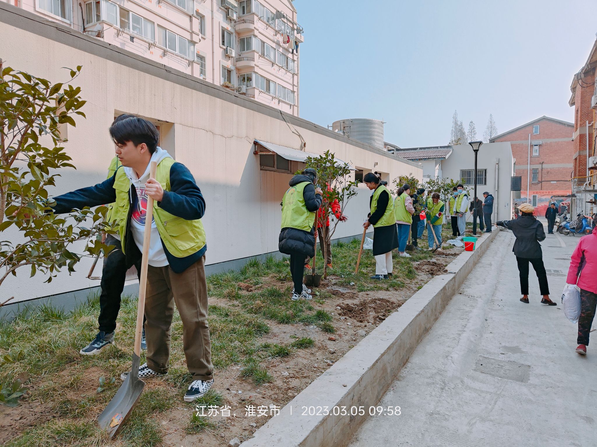 阳光正好,微风不燥。青年志愿者们早早地来到建工楼下,分为两批,一批负责校外的社区活动,另一批负责校内的志愿活动。校外的志愿者们三两成群携手前往社区中心,经与负责人联系过后,先是由四名女生去参加了简短的“妇女儿童保护”讲座,接着便在工作人员的带领下,志愿者们拿起工具,拎起水桶,和党员们一起去苗圃种起了树,男生们满怀热忱,率先拎起锄头挖起了土,互相帮助种下一颗又一颗树苗,充满欢声笑语,十分温馨有爱,耳畔也时不时传来几声雀跃的鸟叫声,大家心里满满的幸福感。
