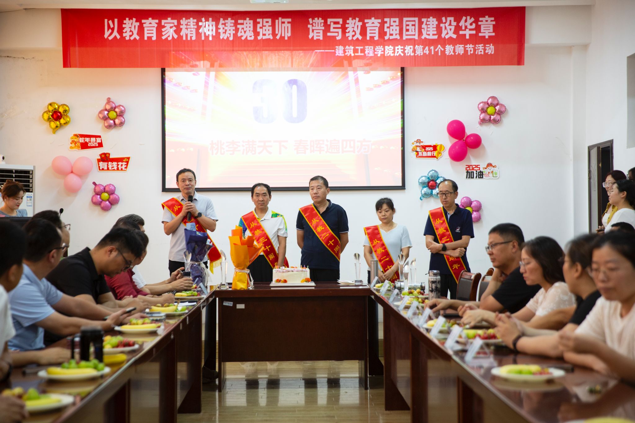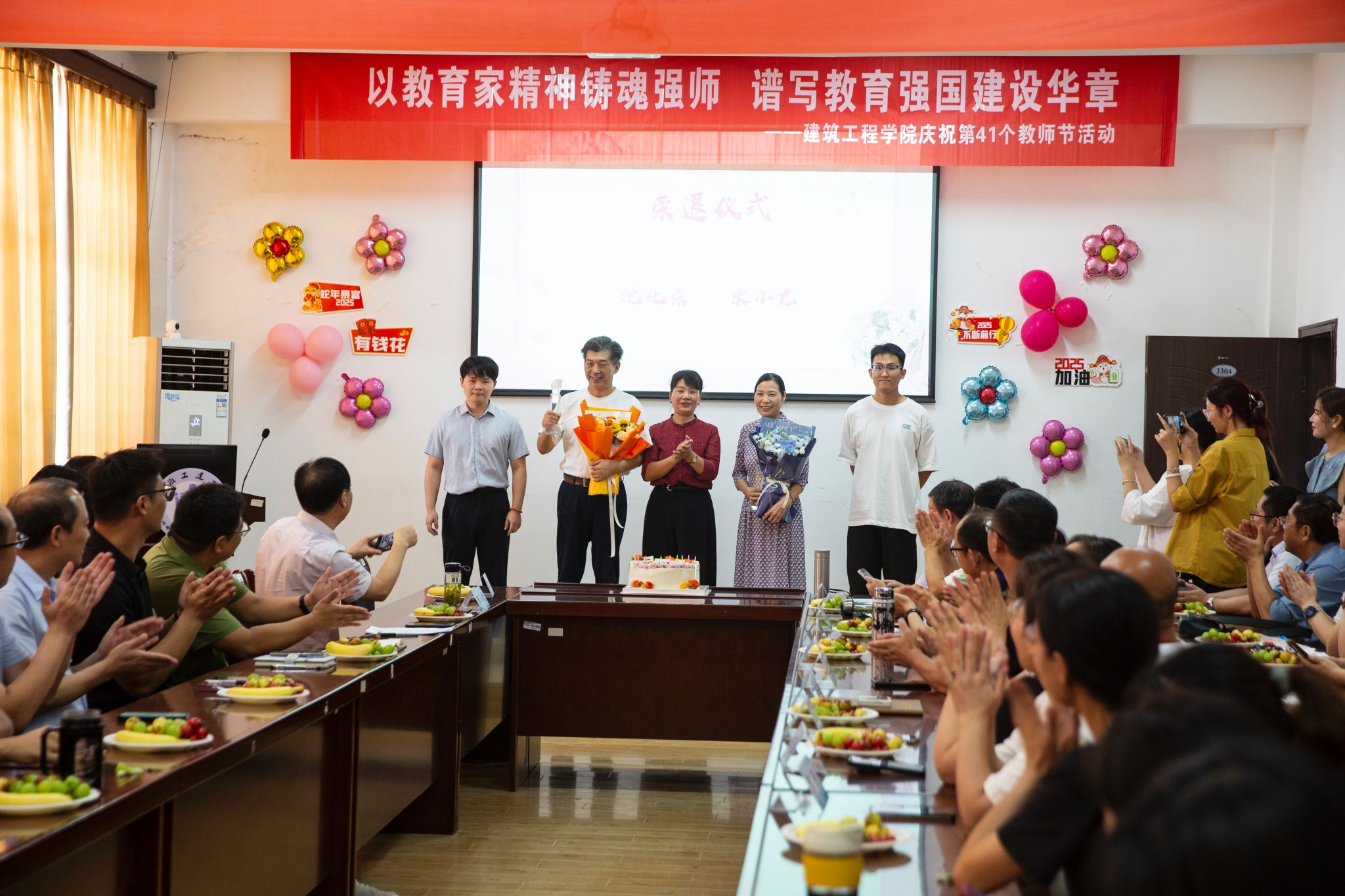 秋韵荡漾,硕果盈枝。为弘扬尊师重教风尚,激励广大教师践行教育家精神,担当育人使命,9月10日,建筑工程学院以“以教育家精神铸魂强师,谱写教育强国建设华章”为主题,隆重举行庆祝第41个教师节系列活动。学院全体教职工欢聚一堂,通过温馨而庄重的仪式,共同庆祝属于自己的节日。
