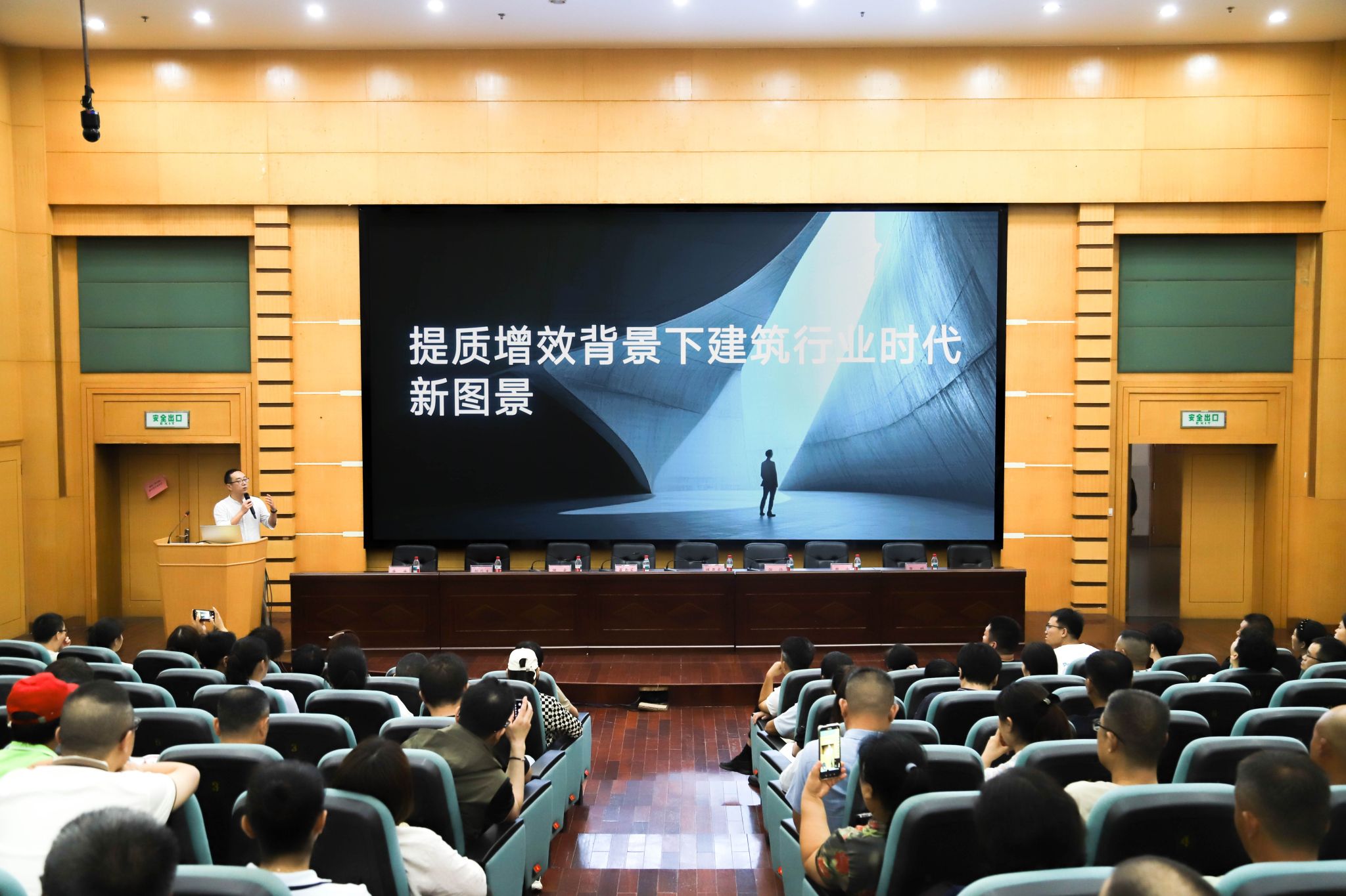 紧接着,学院副院长唐乐围绕 “建筑业发展趋势与人才需求” 进行深度解读。他指出,当前建筑业正处于“基建更新与智能转型”双轮驱动的关键时期:一方面,新型城镇化建设、老旧小区改造等国家战略持续推进,对建筑人才的需求保持稳定;另一方面,BIM 技术、装配式建筑、智能建造等新兴技术的普及,为行业创造了“智能建造工程师”“绿色建筑咨询师”等新赛道。