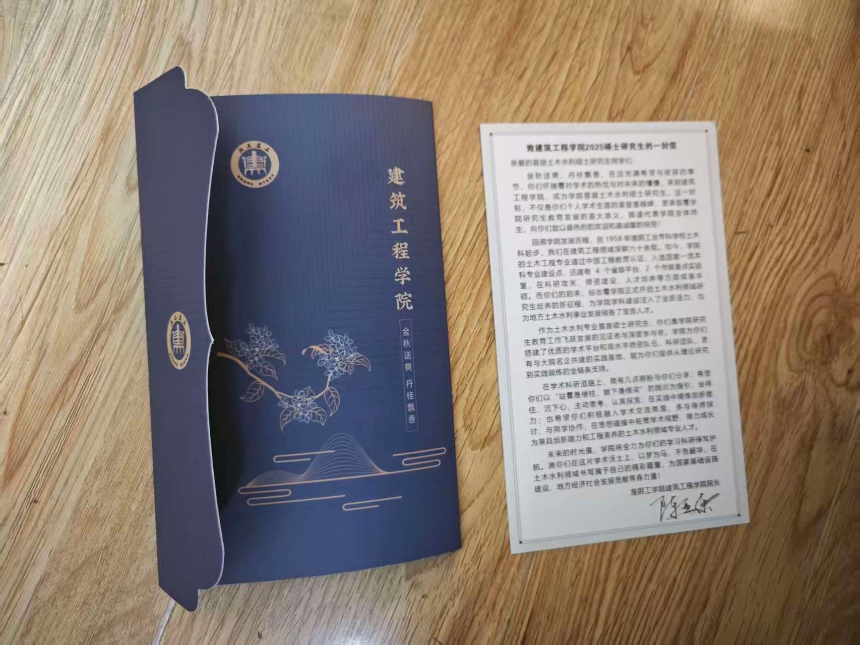 入学报到时学院给全体研究生新生精心准备了入学物资和“致2025硕士研究生的一封信”,介绍学院发展历程,饱含美好期许。在报道现场院领导和新生及家长亲切交流,面对面沟通研究生注意事项,希望家校合力,为新生在学习科研领域保驾护航。