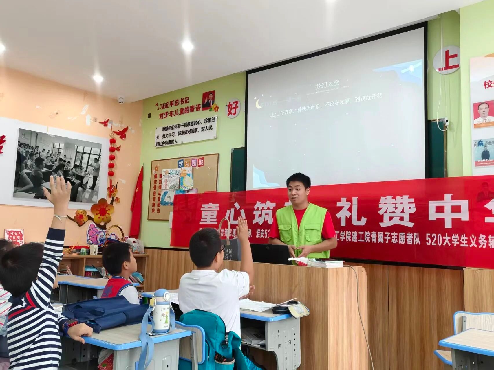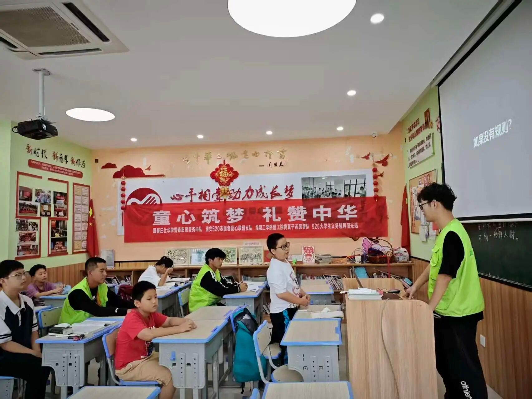 金秋送爽,万里河山披锦绣;丹桂飘香,一轮明月寄深情。在国庆与中秋双节同庆的美好时节,为激发少年儿童的爱国热情,陶冶情操,开阔视野,淮阴工学院建筑工程学院“青翼子”志愿者队精心策划并成功举办了“童心筑梦,礼赞中华”系列公益教育活动。自10月1日至10月5日,活动内容涵盖作业辅导与特色主题课程,包括科学、地理、法治、非遗文化与历史教育,为孩子们带来一个充实而有意义的假期。