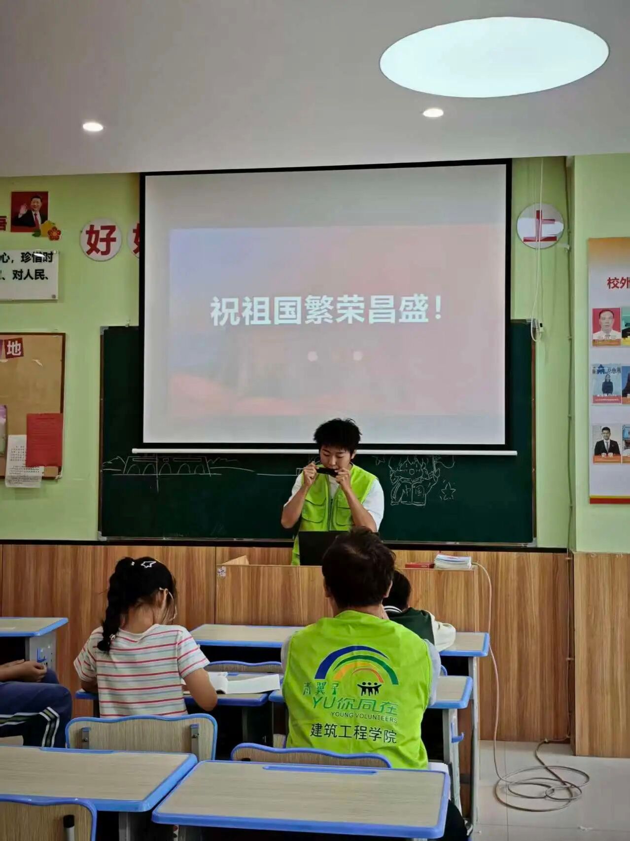 10月5日,活动在“铭记历史,筑梦中华”的庄严主题中达到高潮。志愿者们通过讲述近代以来中华民族的奋斗史,让孩子们深刻理解“一寸山河一寸血”的含义,明白当下的幸福生活是先辈们用血泪换来的。从“两弹一星”的研发,到抗美援朝的胜利,再到中华崛起,一段段历史激发了孩子们的爱国情怀。活动最后,孩子们用真挚的语言宣誓:“少年强则国强,我们是祖国的未来,是八九点钟的太阳,吾辈当自强!”稚嫩中带着铿锵,表达了孩子们铭记历史、振兴中华的坚定决心。课程的最后,志愿者结合自身特长,带来了一系列趣味节目:口琴独奏《我和我的祖国》,巧手折纸打造“中国心”,“绘梦中华”手绘天安门……