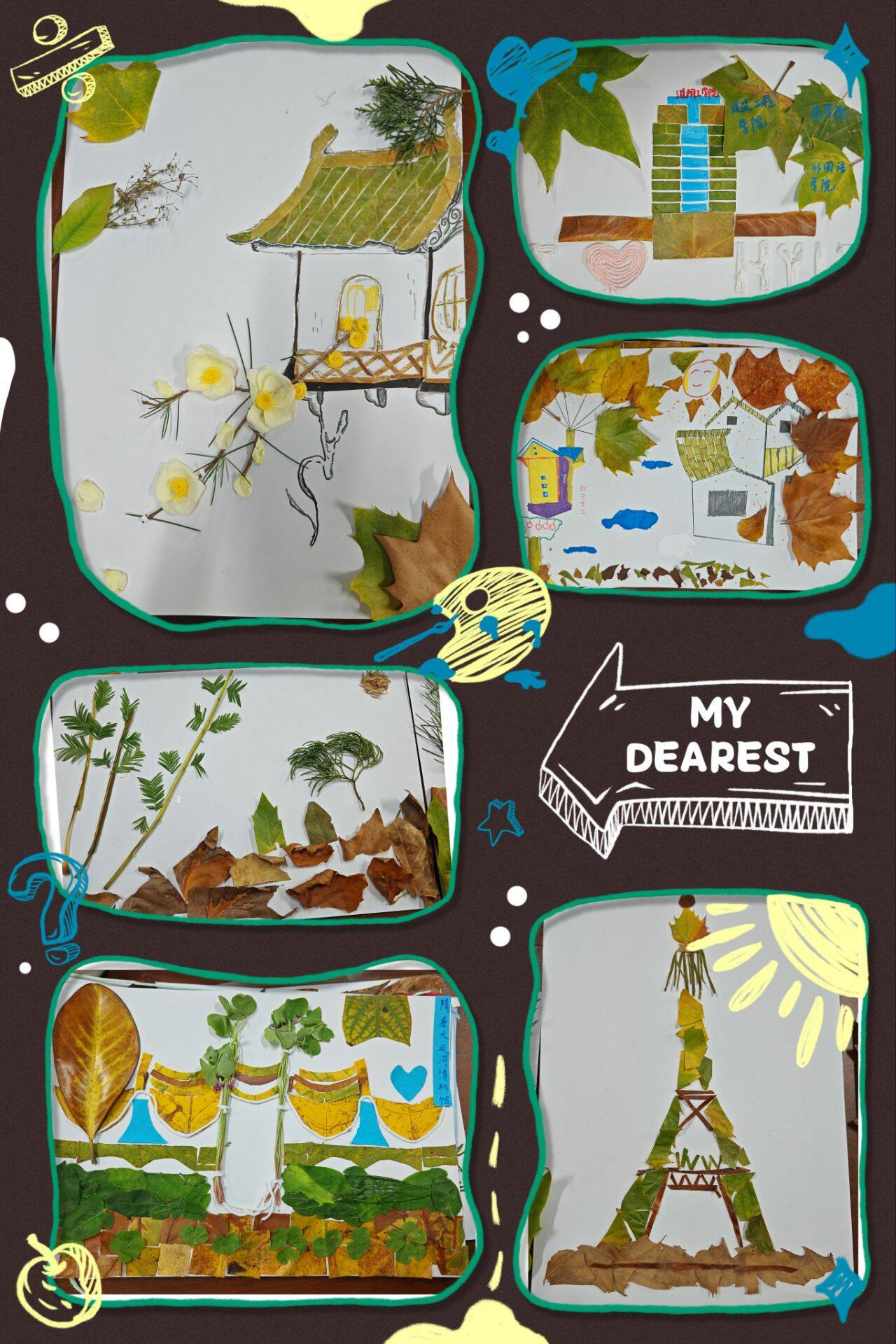 本次比赛以校园中随处可见的落叶为原材料,围绕“校园建筑印象”“城市地标剪影”“传统建筑之美”“未来建筑幻想”“建筑与自然共生”五大主题展开,鼓励同学们创作出具有高辨识度与多元创意的拼贴作品。主题设置兼具包容性与启发性,激发了同学们的参与热情与创作活力。