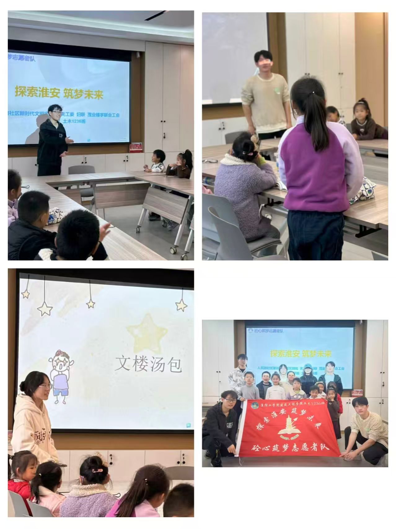 11月16日下午,我院土木1236班“砼心筑梦”志愿者团队前往人民路社区,举办主题为“探索淮安·筑梦未来”的文化探索与成长启迪活动。此次活动旨在通过互动式教学,让孩子们了解淮安的美食、历史和文化,启迪他们的成长与未来。
