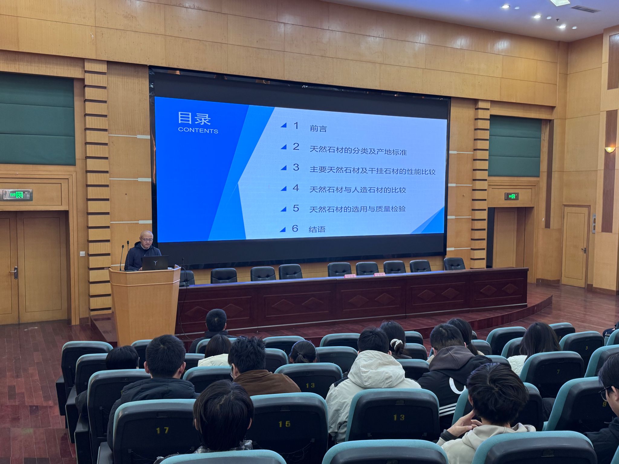 产业导师丁百湛教授作了题为《天然石材之美——工程检测人员应熟悉的天然石材分类及性能标准》的专题报告,系统阐述了天然石材的分类,对比分析了天然石材、干挂石材与人造石材的性能,重点论述了天然石材的选用与质量检验标准。
