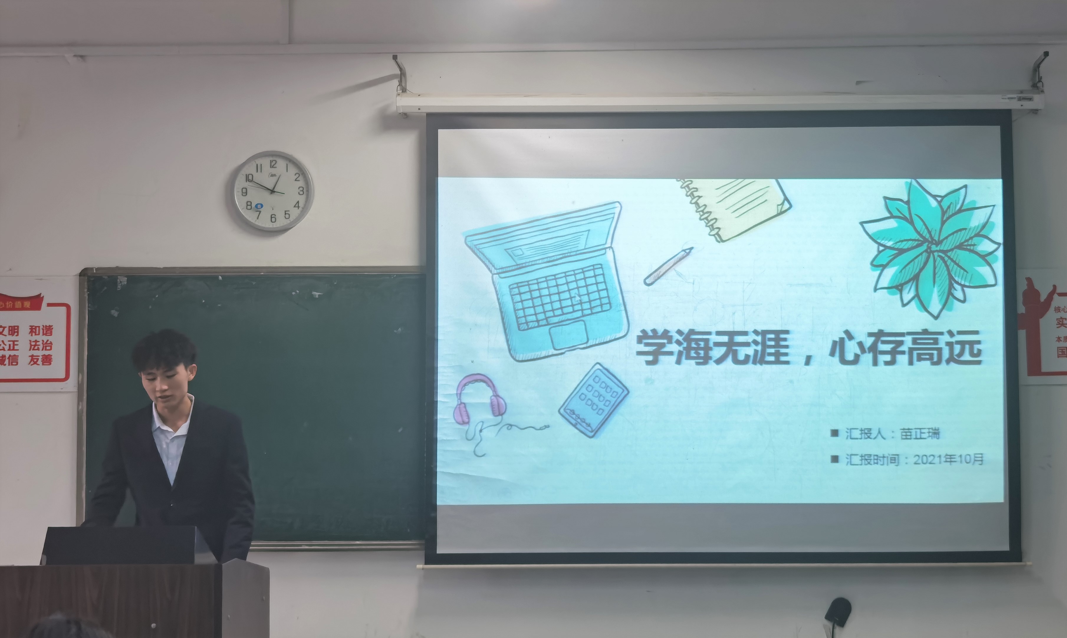 评选答辩活动中,六位选手以幻灯片与演讲结合的形式,从专业学习、思想政治、科研竞赛、社会实践等方面展示自己。思想上,他们向党看齐,严格要求自己,不断提升自己的人生价值。生活上,他们积极参与抗疫志愿活动,为疫情防控工作贡献自己的一份力量。同时,他们以自身优异的学习成绩以及丰富的科研成果,获得了各类荣誉证书,向大一新生诠释了学习的重要性。最后,他们表示会更加努力进取,全力向更好的自己靠近。