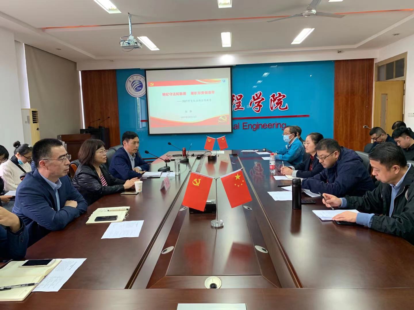 为深入学习贯彻习近平新时代中国特色社会主义思想,落实全面从严治党和依法治国重大决策部署,进一步增强我校党员干部和全体教职工党纪法规意识,提升依法办事依规履职的能力。10月13日下午,校党纪法规宣讲团成员、校审计处处长徐静到化学工程学院开展党纪法规宣讲教育活动,全体教职工参加,会议由院党委书记何其中主持。