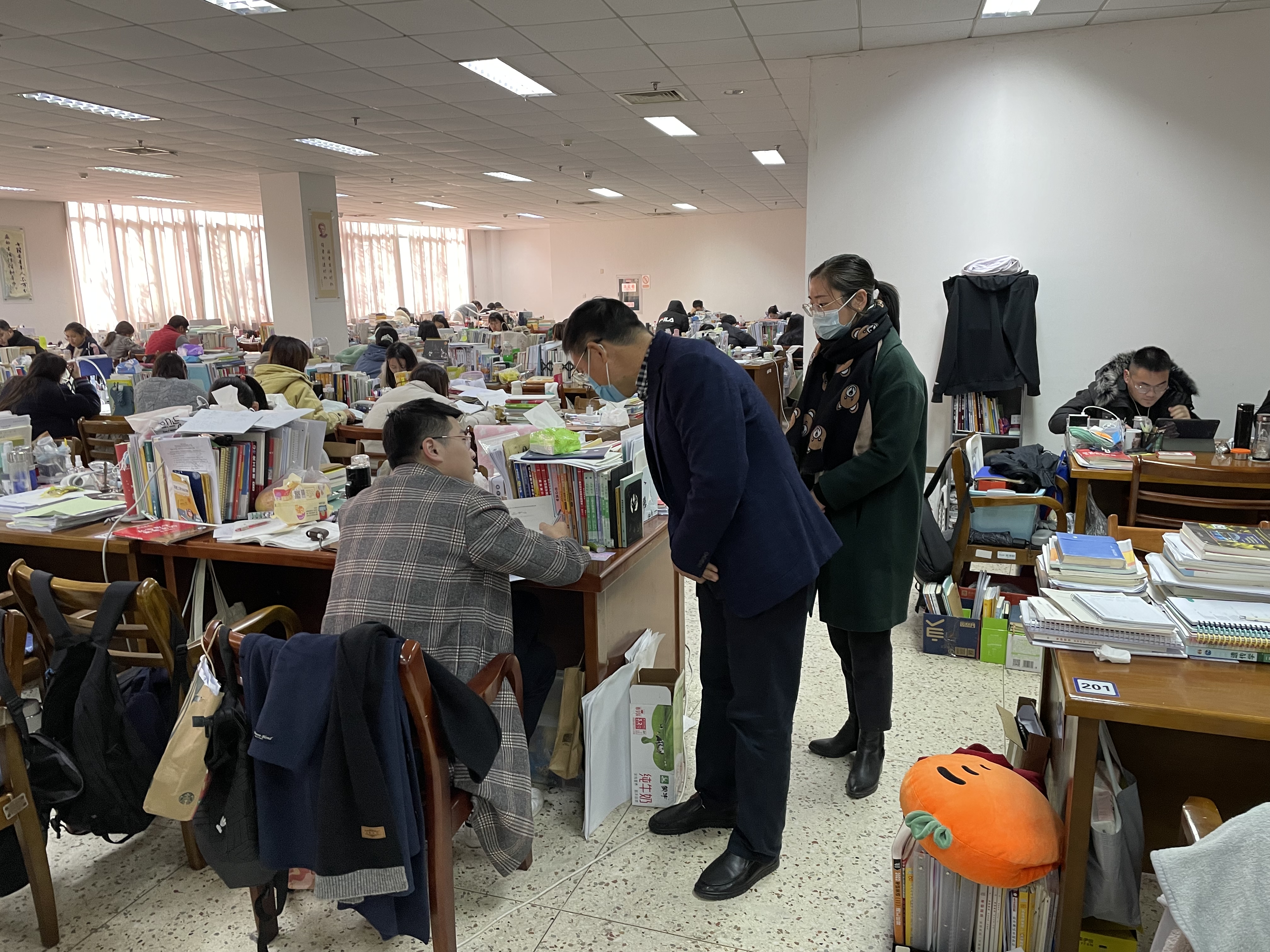 通过实地走访,何其中书记仔细了解学生备考基本情况,鼓励考研同学最后一个月做好全面冲刺,同时还主动提醒和关心学生降温注意防寒保暖。