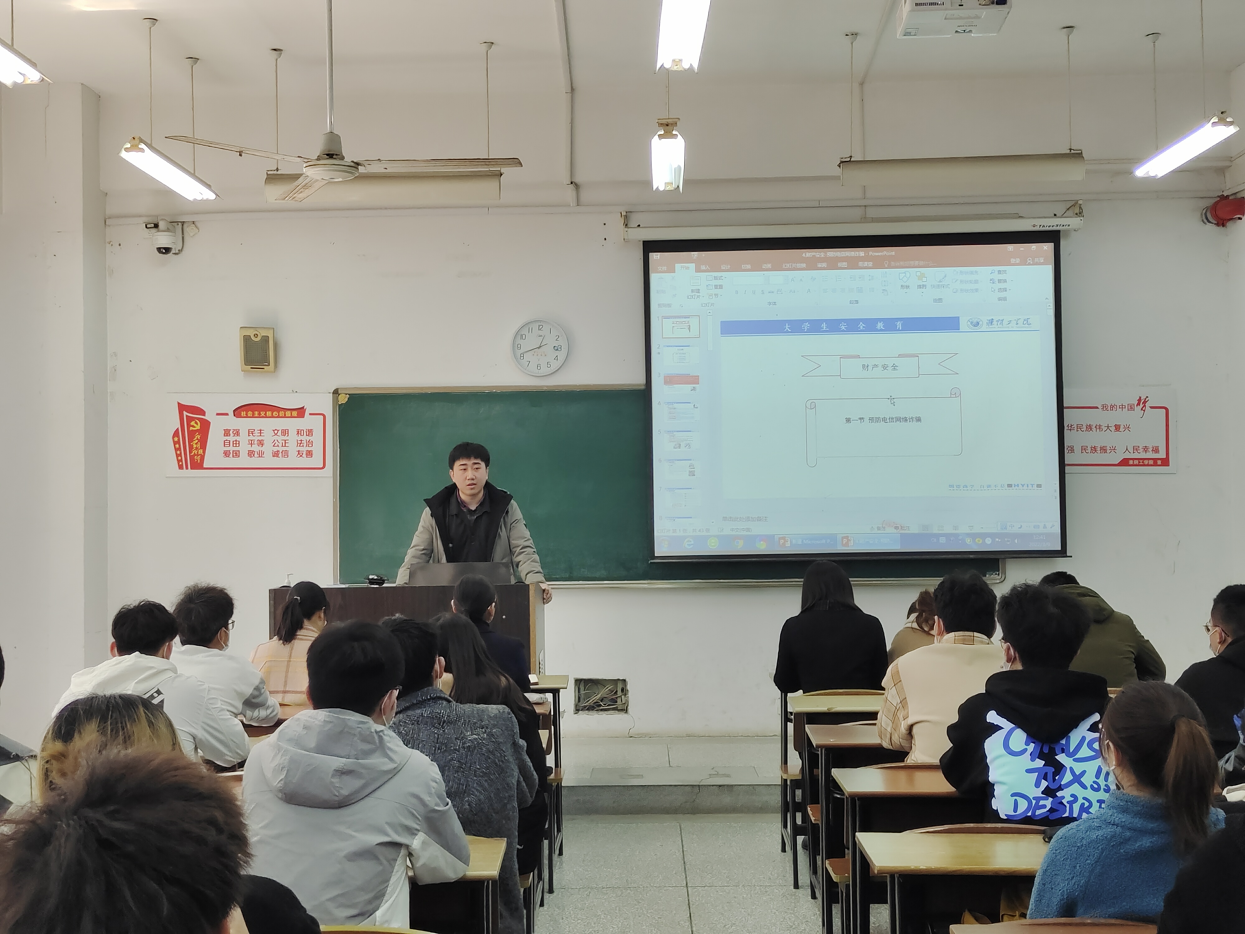 为进一步提高大学生安全防范意识,有效遏制我院电信诈骗案件发生,3月9日中午13:00,化学工程学院在21108召开预防电信诈骗专题培训会,辅导员陈泰康为学院各班级班长、团支书作专题培训,学院全体辅导员参加此次会议。