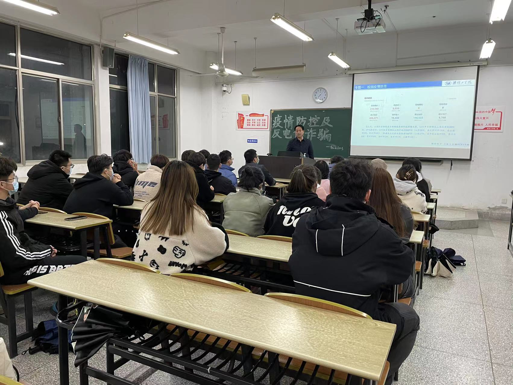 会上,领导干部们为同学分析了国内严峻的疫情形势及疫情防控“动态清零”政策,解读了学校疫情防控工作领导小组的相关措施,讲解了违反疫情防控的案例及严重后果,号召广大同学们树立防护意识,教育同学们遵守学校的疫情防控相关规定,齐心协力共抗疫情。其次,各位领导干部还深入开展校园电信网络诈骗防范教育,通过典型案列、常见类型、识别方法和防范措施四个角度,提高同学们的反诈意识。在班会召开的过程中,各位领导干部与学生亲密交流,有效地进行了教育宣传工作。