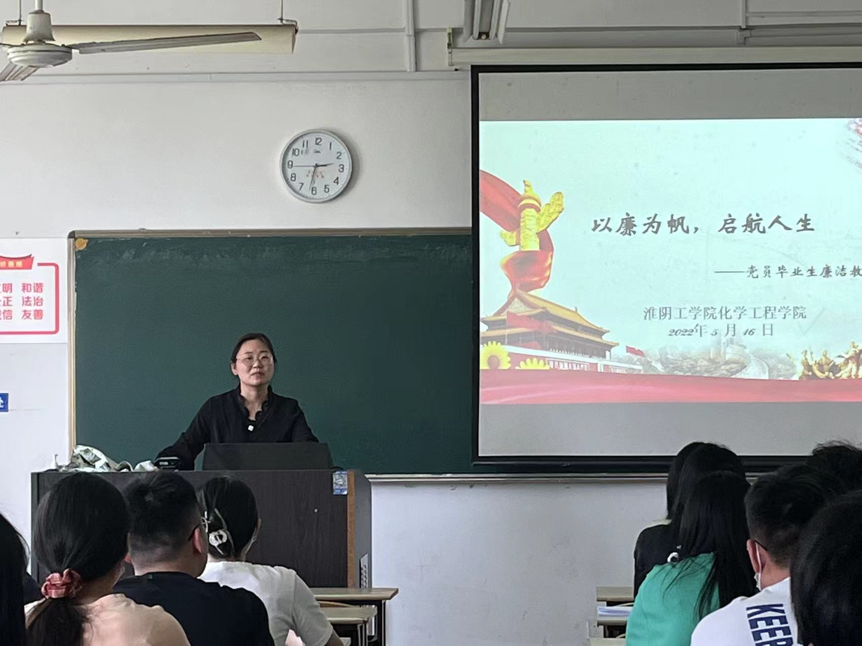 为进一步加强2022届毕业生党员廉洁教育,培养毕业生党员廉洁自律意识,2022年5月16日下午,化学工程学院在21108开展“以廉为帆,起航人生”毕业生党员廉洁教育专题党课。本次活动由化学工程学院党委副书记金娅琳主讲,毕业生党员参与了本次党课。