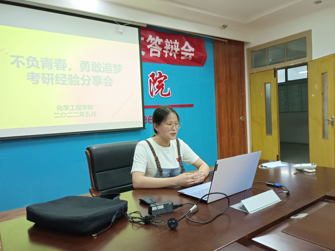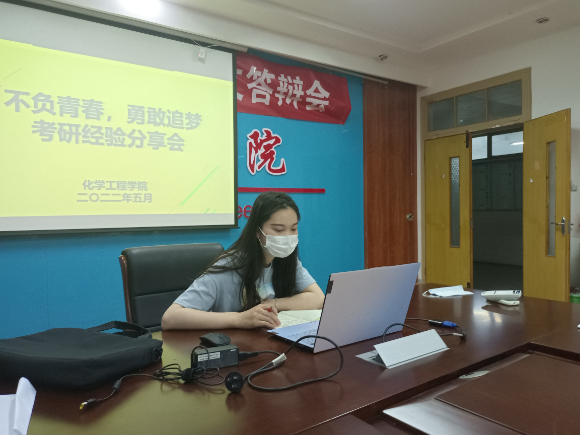 本次会议采用线上、线下相结合的方式同步进行,六位学长学姐分别从考研计划、学习方法、选择院校等方面交流自己的考研经历,第一位化工1181许钰洁,侧重考研计划,建议考研学生尽早开始准备,制定好合理的学习计划,每天严格按照计划执行,但是也要劳逸结合。接下来几位学长学姐通过自己备考的经验分享了不同的学习方法,分别从老师的推荐,复习的书籍,以及学习的步骤充分讲解。最后一位环境1181 陈亮,从择校方面分享了自己的想法,择校是考研的第一步,只有明确好自己的目标才能有努力的方向,但是也需要根据自己的心态以及能力合理选择院校,不要好高骛远,眼高手低。大会最后,陈泰康希望同学们可以充分利用暑假这段学习的黄金时期,根据学长,学姐分享的考研经验以及自身的能力制定好考研计划,也希望同学们可以在考研的道路上一帆风顺。