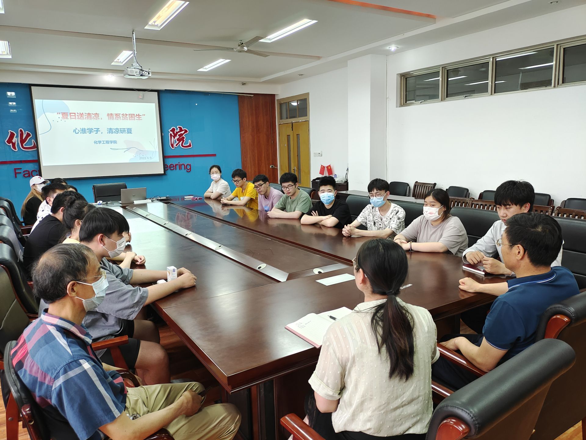 为充分发挥我院关工委育人成效,将关心和关爱普及到更多学生,6月9日下午,化学工程学院关工委开展“情系考研生,助力考研梦”关爱考研学子活动。化学工程学院关工委主任何其中、关工委副主任金娅琳、关工委钱运华老师以及部分学生代表参加本次活动。