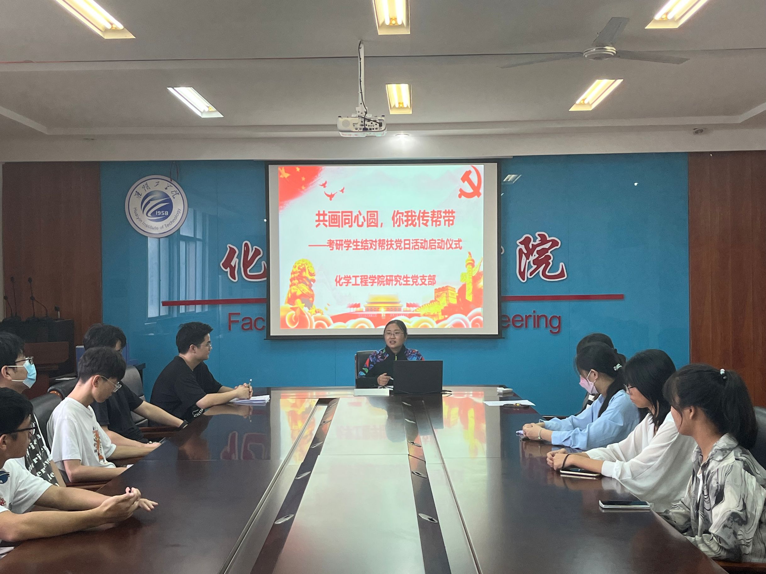 为彰显党员的服务意识,发挥党员的先锋模范作用,充分展现当代大学生的精神风貌,更好地为考研学生服务,化学工程学院研究生党支部策划开展“共画同心圆,你我传帮带”主题党日活动,9月30日下午举行了启动仪式,学院党委副书记金娅琳、研究生党支部书记胡婷婷及支部全体党员同学出席此次活动。