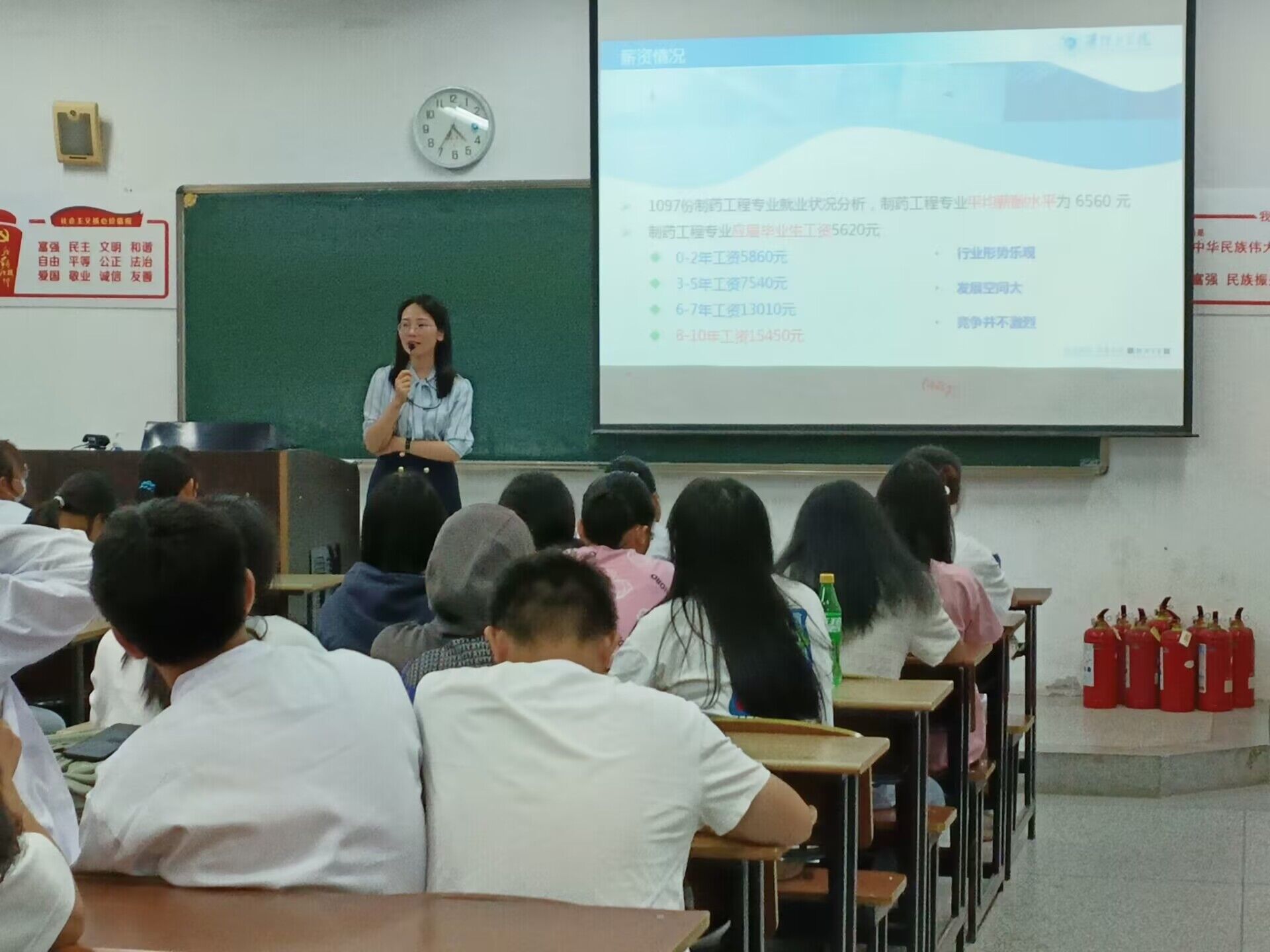 袁君老师通过PPT向新生分享了我院往年制药专业学生的考研情况和毕业后的就业情况、我院雄厚的师资力量、制药专业的就业前景,帮助大一新生坚定了努力学习的决心;同时,袁君老师还为新生介绍了他们大二实训的相关情况,并指出制药专业最重要的学习内容就是药物分析,引起了新生们极大的重视。活动最后,袁君老师指出,本专业学习的关键就是实践,希望同学们在接下来的学习生活中能够用实践检验所学理论知识,实现制药强国。