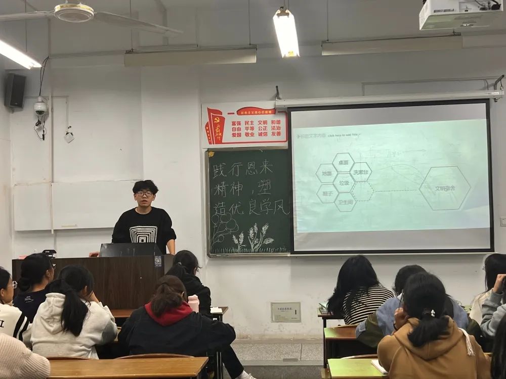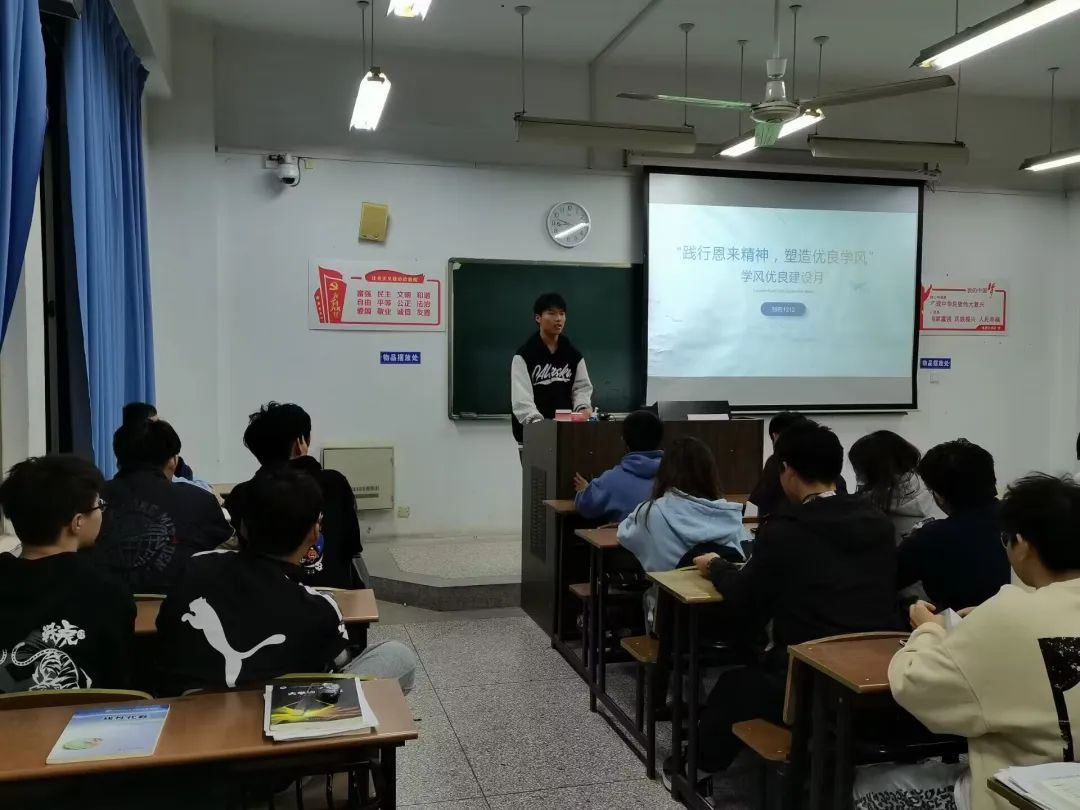 活动过程中,由各班班干部负责宣讲《关于开展化学工程学院“践行恩来精神 塑造优良学风”学风重点建设月活动的通知》,并围绕学风、班风建设的内容及具体实施方案向班级同学提出要求和期望。