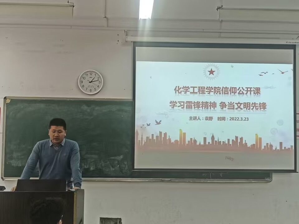3月23日,化学工程学院举办了“学习雷锋精神,争当文明先锋”信仰公开课。团委书记袁野老师作为主讲人,本次活动采用线上线下相结合的形式,化工学院全体学生积极参与了本次活动。