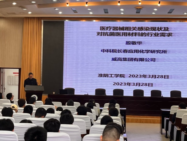 3月28日下午,应叶玮院长邀请,威高集团有限公司总工程师,威高研究院院长、长春应化所殷敬华研究员莅临我院,在翔宇楼二楼报告厅进行了题为“医疗器械相关感染现状及对抗菌医用材料的行业需求”的学术报告。