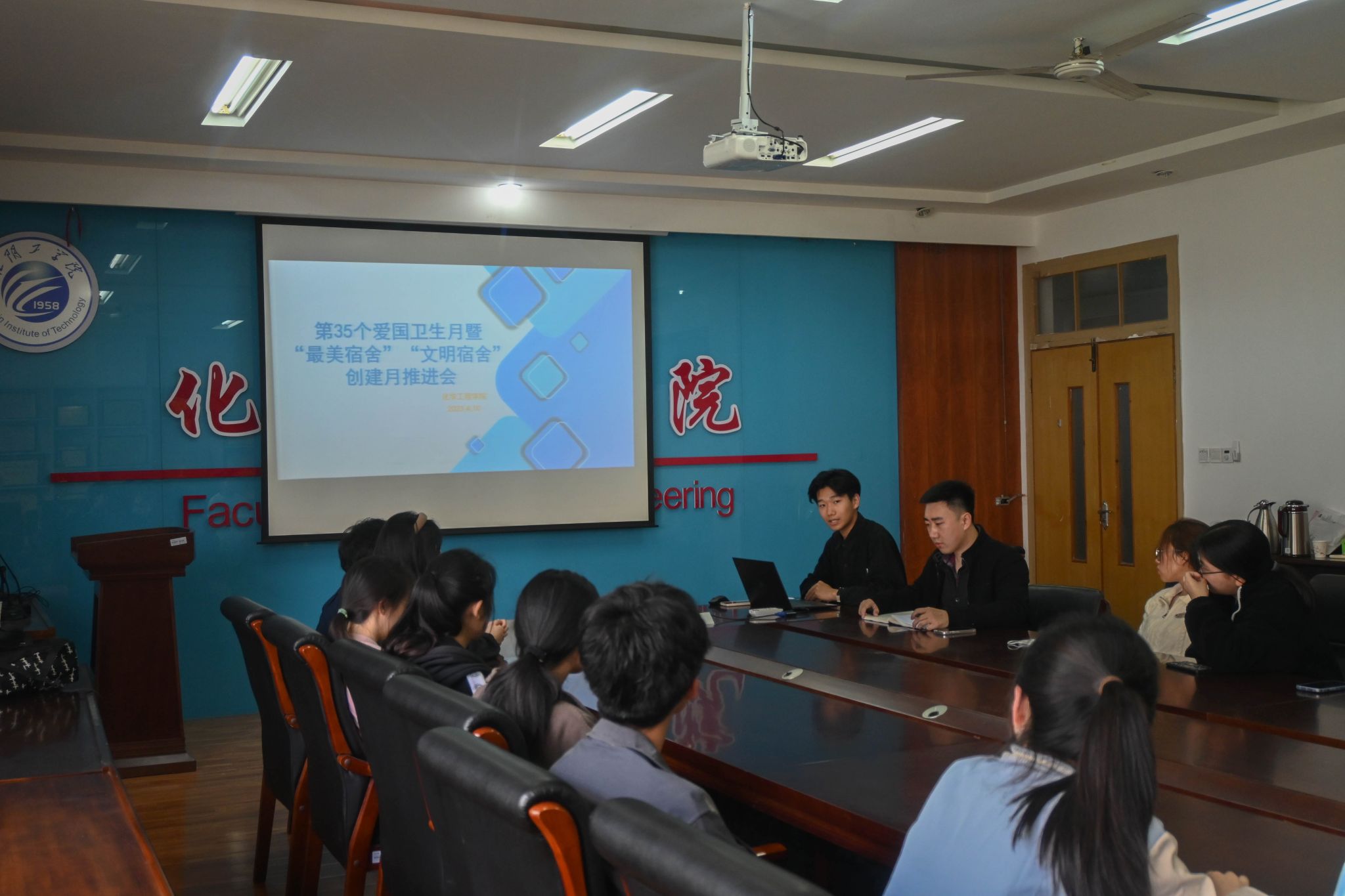 化学工程学院于4月20日在26211会议室召开了第35个爱国卫生月暨“最美宿舍”、“文明宿舍”重点创建月工作推进会。此次会议旨在通过全院师生的共同努力,推进学院文明宿舍创建和培养学生养成良好生活习惯。本次会议由辅导员陈泰康主持,化学工程学院学生会权益部全体成员、各班级生活委员参加了会议。