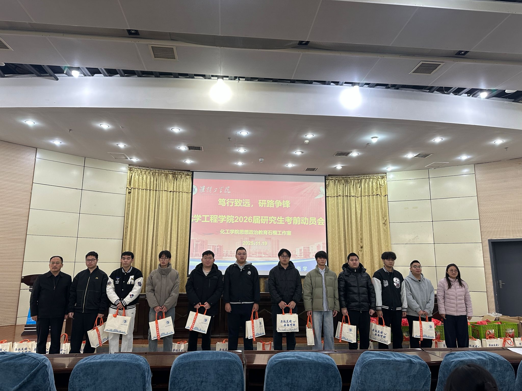 逐梦之路,从不是孤身前行。为鼓舞备战考研的学子们坚定信念、全力冲刺,11月19日10点,化学工程学院在图书馆报告厅精心举办了一场温情满满的考研动员活动。参加本次活动的有化学工程学院党委书记张常新,党委副书记金娅琳,学生工作办公室主任袁野和全体2022级考研学生。