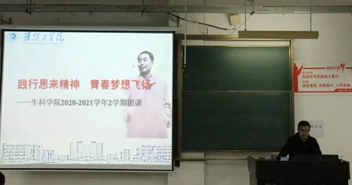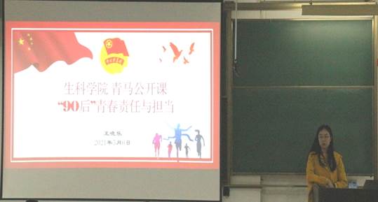 5月6日,生科学院于YFJ106开展了2021年第一期青马公开课,本次青马公开课由生科学院党团委副书记王晓乐和辅导员夏继林主讲,生科学院部分同学参加了此次课程。