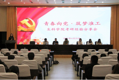 4月29日晚,生科学院于翔宇楼二楼报告厅举办了“青春向党·筑梦淮工”考研经验分享会暨“春日送阳光”活动。本次分享会由学生会张瑜主持,食品1172任欣荣、生物1171王浚琪、农学1171李威、食品1173朱灵灵、园艺1171祁楚楚和新能源1171姜宜东六位考取研究生的同学作经验分享,生科学院党委副书记夏雪芹、团委副书记王晓乐及部分18级、19级同学参加会议。