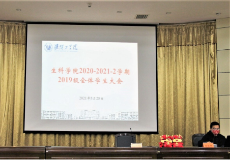 为进一步加强学风建设,深化生科学院2019级学生日常管理及网络安全教育,生科学院于2021年5月25日晚19:00在图书馆报告厅召开全体学生大会,生科学院学工办主任王江川老师和2019级全体同学参加了会议,会议由2019级辅导员夏继林老师主持。