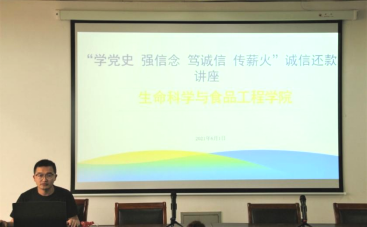 为全面贯彻落实《省教育厅办公室关于开展高校学生资助诚信教育主题活动的通知》(苏教办助函〔2021〕5号)文件精神,引导青年学生坚守初心使命,珍爱信用、理性消费,提高借款学生的征信意识、风险意识和感恩意识,5月31日,生科学院在28208会议室举办了“学党史 强信念 笃诚信 传薪火”诚信还款专题讲座。