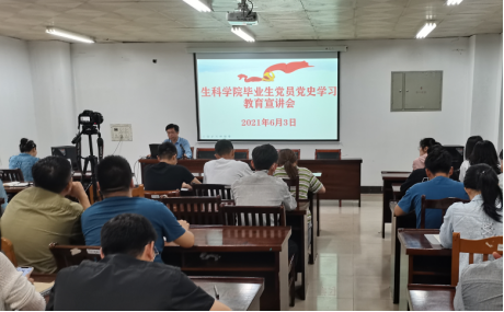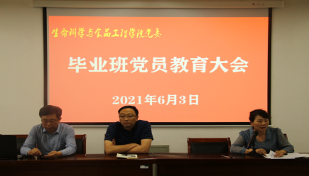 为认真做好学院2021届毕业生党员的教育管理工作,加强对毕业生党员的党史学习教育,6月3日下午,生科学院在28208会议室召开毕业生党员教育大会暨党史学习教育专题会。院长王朝宇、党委副书记夏雪芹、党务秘书胡庄方、全体毕业生党员参加了会议,会议由党委书记朱永江主持。