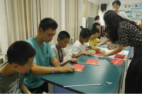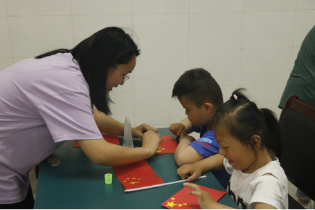此次活动分为四个部分:剪纸、赏动画、颂党音及听故事。生物1191高嘉辉以革命英雄刘胡兰的故事拉开了活动的序幕,接着生物1191汤璐诗给孩子们讲述五星红旗的含义,随后同学们带领孩子们一起制作小红旗,一面面闪亮着五星的小红旗饱含着孩子们对祖国的爱。最后,食品1193班吴悦教孩子们唱《闪闪的红星》,将爱国的理想信念根植于每位孩子心中。一首首党歌,一个个革命故事,一段段英雄事迹,让在场的每位同学重温了属于先辈们的光荣岁月。