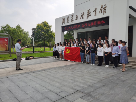 铮铮誓言在“周恩来五德教育馆”激昂回荡,李扬同志代表学院46名新党员表态发言,表达了对党的热爱和为共产主义奋斗终身的坚定决心。