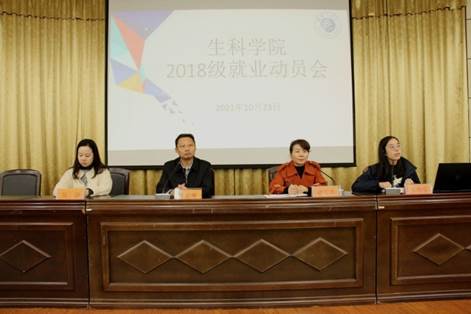 10月23日下午,生科学院于图书馆报告厅召开2018级毕业生就业动员大会。成人教育处副处长、继续教育学院副院长周定晖,生科学院党委副书记、副院长夏雪芹,18级辅导员王晓乐、吴静出席本次大会,生科学院2018级全体学生参加了此次会议。