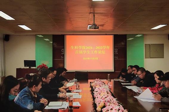 为了加强班主任、辅导员以及院领导班子之间的交流,进一步提高学生工作的质量,11月3日下午,生科学院于28206举行了2021-2022学年首届学生工作论坛。本次论坛由生科学院学工办主任王江川主持,党委书记朱永江、院长王朝宇、党委副书记、副院长夏雪芹以及全体辅导员、班主任出席会议。