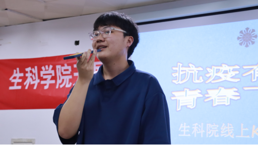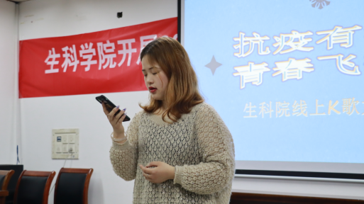 为丰富和活跃疫情防控期大学生的课余生活,展现生科学子积极乐观的精神风貌,生科学院于4月26日晚七点在28208教室举办“抗疫有我,青春飞扬”K歌大赛。为落实疫情防控相关要求,现场仅允许相关参赛选手和评委老师到场,其他同学则可选择在全民K歌歌房直播平台为选手们加油打气。