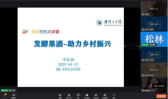 4月27日下午,生科学院于线上钉钉群开展了以“发酵果酒-助力乡村振兴”为主题的第六期生科大讲堂讲座。本期主讲教师为生科学院李松林博士,生科学院部分学生参加了此次讲座。