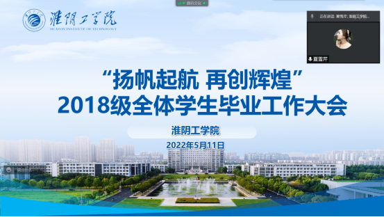 夏雪芹副书记做总结发言,她强调每位毕业生一定要认真领会会议介绍事项,认真完成毕业前相关工作。同时她从三个方面寄语毕业生:一、要树立远大的理想信念。对于即将踏出校门的毕业生,要调整好心态面对社会,做好未来人生的规划,树立远大理想不断奋斗。二、要心存感激爱校荣校。希望毕业生们走上社会,时刻发扬“明德尚学 自强不息”的淮工精神。同样,母校永远是各位毕业生的港湾,永远敞开胸怀,欢迎大家的联系,迎接大家的归来。三、要做一个诚实守信的人。走上工作岗位,成为社会一员,做人一定要脚踏实地,永远保持谦虚好学、诚信做人的美好品质。