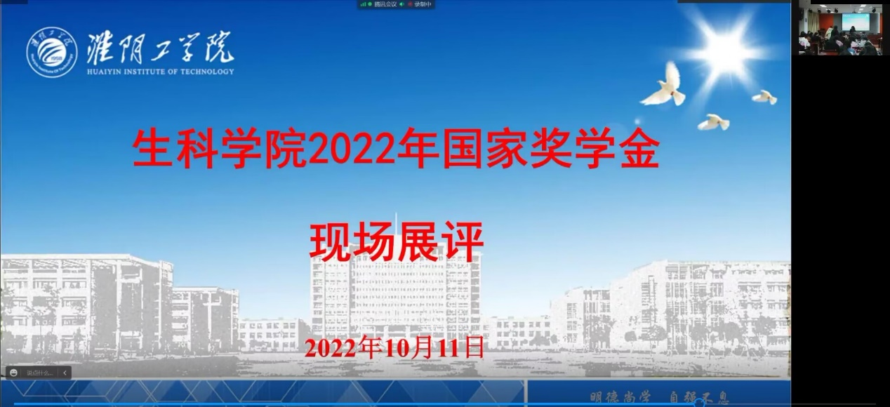 生科学院于10月11日晚在主会场图书馆6楼618,分会场各班晚自习教室举办了2022年国家奖学金展评活动。此次活动由学院党委副书记、副院长夏雪芹、学院关工委周青教授、院长助理黄志楠、食品系教师党支部书记聂凌鸿、生工系主任罗洪镇、园景系教师党支部书记季淮、园景系主任靳丛、团委副书记王晓乐以及全体辅导员出席并担任评委。