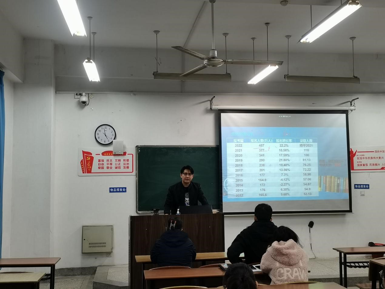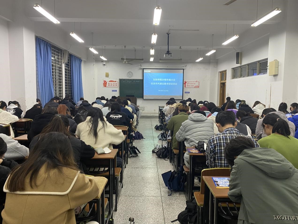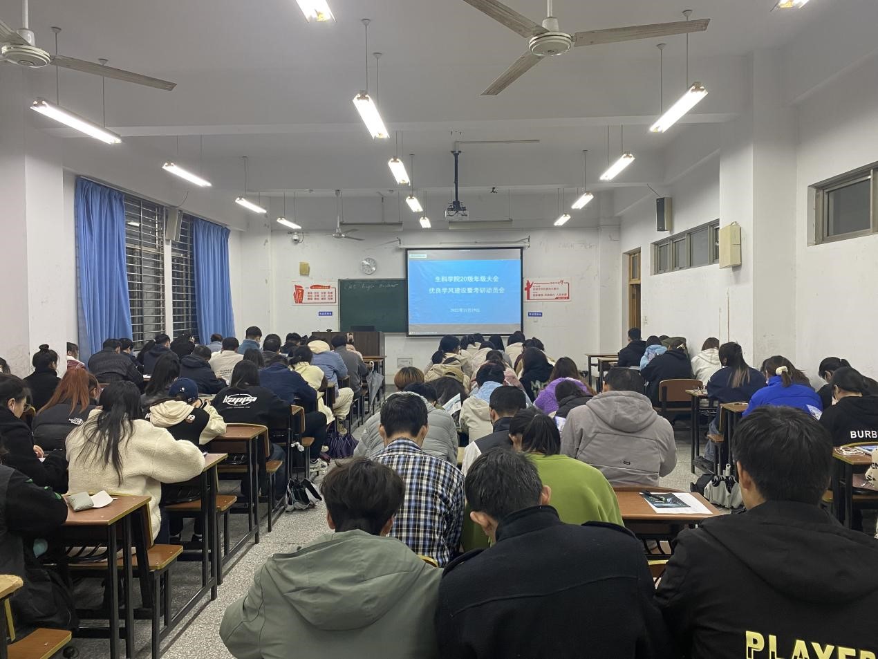为进一步加强学院优良学风建设,提升考研促学风的引领作用,11月19日下午4:30,在22号楼108等教室召开生科学院2020级优良学风建设暨考研动员会。院党委副书记、副院长夏雪芹,学工办主任余文冲,2020级学生辅导员张爱芳以及全体2020级学生参加本次会议。会议还特别邀请考研名师米雷老师做考研专题讲座。